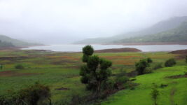 Driving ahead, we could see the lovely lush green landscapes and peaks covered with clouds. It’s always a pleasure to drive in such weather; where in it may just rain at any moment and all you see is greenery all around with a lot of water streams crossing across. Soon we reached a point where we got a good view of the Mulshi Lake; and thankfully the rain stopped as well; which gave me some good landscape shots. We also saw quite a no. of Oriental Magpie robins here; at-least 4-5, and also the White throated kingfisher, Oriental white-eye and Coppersmith Barbets. I was busy clicking pics of the valley and suddenly it started pouring down. We got back into the car and resumed our drive.