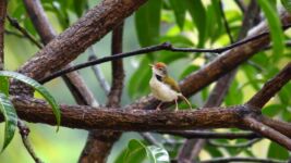 Next we halted at Belgaum for lunch and resumed our journey by 1:30 PM. The 1st town we came across after Belgaum was Jamboti. There was a little rain drizzle and after driving for around 2 KMs from this town we reach a patch of road with thick forests on either sights, and yes.. there were quite a no. of chirps all around. We parked the car to the side of the road and got down to check-out the birds and we were surely not disappointed. 4 lifers at 1 spot!.. There were around 6 Pompadour Green Pigeons, Square tailed Bulbul, Scarlet Minivet and the beautiful Vernal Hanging Parrot. We also saw the Golden fronted leaf bird, white cheeked barbet and Orange headed thrush at the same spot. 7 species at one spot; couldn’t have asked for more. We resumed our journey and as we neared Goa, we were greeted with a flying Cinnamon Bittern. We eventually reached Goa at 5:00 PM.