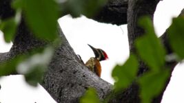 Day 3 we had decided to go to Tambdi Surla via the Bhagwan Mahaveer Wild life Sanctuary. Again the rains were just pouring down, still I thought of taking a chance a started the journey by 9 AM. As soon as we entered the jungle area, we saw a pair of Malabar Grey Hornbills and the Chestnut headed bee-eaters. We were also greeted by the beautiful lesser golden backed Woodpecker, Wooly necked Storks and the classy Scarlet Minivet. As we neared Tambdi Surla, we again saw a couple of Malabar Grey Hornbills and Greater Racket Tailed Drongos. Rain had only increased which resulted in no birding at Tambdi Surla temple.