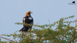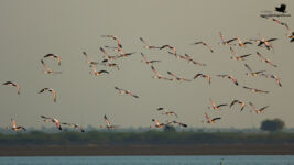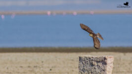 As with Day 1; Day 2 post lunch safari started by 2:30 PM. This time the area to be explored was Kharaghoda. Kharaghoda is a little far from our resort (which is more closer to Bajana), hence we took around 45 minutes to reach. We were soon on lookout for the elusive Macqueen’s Bustard. As we were exploring; we came across Chestnut-bellied Sandgrouse, Common Kestrel and Long-billed Pipit. Bura Bhai soon spotted a Desert fox relaxing under the shade of a tree in open. Undoubtedly one of the key highlights of the trip. We spotted another individual again in the same area. Exploring further, we saw a Macqueen’s Bustard in flight. Unfortunately none of us could click it and had to be satisfied with a flight sighting for few seconds. We did explored more but no luck with the Macqueen’s Bustard. While driving back; we spotted quite a number of Syke’s Nightjars as well. Yet another lifer. Soon we moved closer to a huge wetland at around 4:30 PM, which was pretty much covered with the beautiful Lesser Flamingoes. Special mention here for Subhash Sir as he clicked some lovely Silhouette clicks for all of us. You may check his clicks here – Subhash Bhagwat. As we were busy clicking the Flamingoes, suddenly all of them flew for a moment; and it was because of advent of the majestic Eastern Imperial Eagle. We also managed to click some harriers at this place and did some group photography with the backdrop of a lovely sunset.