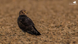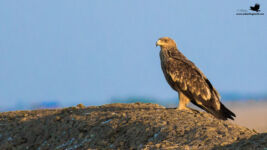 Day 3 morning session was again planned at Bajana. We had seen quite a no. of species till now; 101 to be specific but one key species of LRK was missing – the Falcons.! As we entered the Bajana area, Bura Bhai did not take much time before sighting one of the falcons; rather the fastest bird – Peregrine Falcon. We approached cautiously till we got decent shots and enjoyed a good sighting of the bird. We again spotted the Short-eared Owl and also the Red-necked Falcon. Unfortunately we only managed to see it in flight and could not manage a click. We also saw quite a number of Greater short-toed larks, Common Cranes, Wild Boars and Steppe Eagle. After exploring for a while we halted for breakfast. After a good breakfast and some more group photo session we finally started our return journey to the resort. That was the last session at LRK, but wait.. it was not over just yet. We saw a raptor take flight towards our left which turned out to be Shikra. However going little further, Bura Bhai helped us to spot the Merlin!. This was the best sighting among all the birds we saw. We could only manage record shots but we did enjoy some good views of this little falcon.