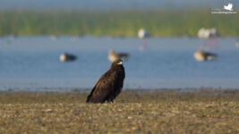 Moving ahead we saw quite a number of Common cranes; which soon became a very common sight. We could see them everywhere. Soon we were able to see the huge open lands with water cover in patches; very typical of Kutch deserts. And these water patches had a lot of pink spots in them which were nothing else but the beautiful Lesser Flamingoes. We also came across the endemic and endangered Indian Wild Asses. Our driver cum guide (Bura Bhai) soon took the vehicle around some bushes where we were on lookout for the Short-eared owl. Wasn’t long enough and Bura Bhai helped us to sight not one but 3 Short-eared Owl. Surely seemed to be a family. After clicking some snaps, we explored the area more to see a variety of birds that included the Eastern Imperial Eagle, Pallas Gulls, Steppe Eagle, Common Kestrel, Montagu’s Harrier, Black Drongo and so on.