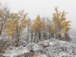 We got back to the vehicle and the skies darkened, followed by flurries which soon turned into a snowfall. We drove to a road trail where the activity of Grizzly Bears was quite high and were looking around for these magnificent creatures but it ended with some disappointment as the road was closed due to heavy snowfall in morning. We returned back to main road, still looking for the bears – no luck though and the snowfall also increased. We were told that wildlife generally hunkers down in such heavy snowfall, so chances of spotting any form of wildlife was very low. Good thing being it was for the 1st time we experienced such heavy snowfall, so we took a halt at an overlook point and just enjoyed the crazy snow flakes. The Aspens & Pine trees were also looking beautiful in the snowfall with the ground completely covered by the snow.