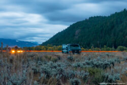 The light was dipping fast and after clicking to our heart’s content, we came to an overlook point. It was getting darker by every minute and slowly the clouds over the Teton range started disappearing. We enjoyed the lovely sunset till the Teton range disappeared again – this time in the dark.