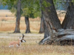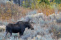Being the final day for the tour, we checked out from the hotel early. Shaun was our guide for today and our 1st halt was the overlook point where we sighted an Elk Harem and a Moose. We went on exploring and soon came across the Mule Deers, around 11 of them and also saw yet another bull Elk on the ridge. Soon we were driving through the dense woodlands, when out of nowhere a young Black Bear appeared right in-front of vehicle! It crossed the road and hugged a tree before disappearing into the woodlands. All this happened so quickly and so up-close that I hardly had anytime to pick up the camera. We came across some birds as well – Red-tailed Hawks, a Bald Eagle, Mountain Bluebirds, American Robins, Common Mergansers and the beautiful Barrow’s Golden Eye. It was about time and just as we started our return journey, a Pronghorn propped up. Walking in the beautiful sagebrush scape with the Teton Range in the background. We took few more halts to capture some beautiful landscapes and finally got dropped off at the Jackson Hole Airport.