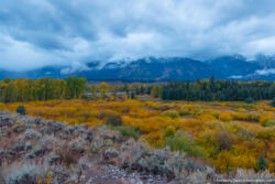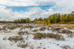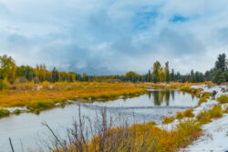 It was 1530 hrs and time for our 1st excursion – a half day sunset trip to Grand Teton National Park. We were greeted right on time by our guide – Colin. The showers were still on and as we travelled on wet roads exploring for any form of wildlife, we couldn’t sight anything apart from few American Robins perched on dry trees under the cloudy skies. It was just the Aspen trees that added some colour to the dull appearing landscapes, especially with Grand Teton peaks not visible at all.