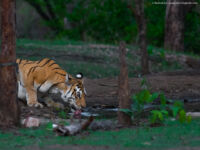 To start with, most of the National Parks (better known as Tiger Reserves for obvious reasons) are famous for the chance to sight and photograph the majestic cat roaming in the wild. Note that your luck plays a large role in sighting these wild tigers, although the guides in safaris (game drives) do their best to show up a glimpse of the tiger (more than a glimpse 😉 many a times) based on their knowledge of tracking them. Here are few images we have managed to capture of the Bengal Tiger.